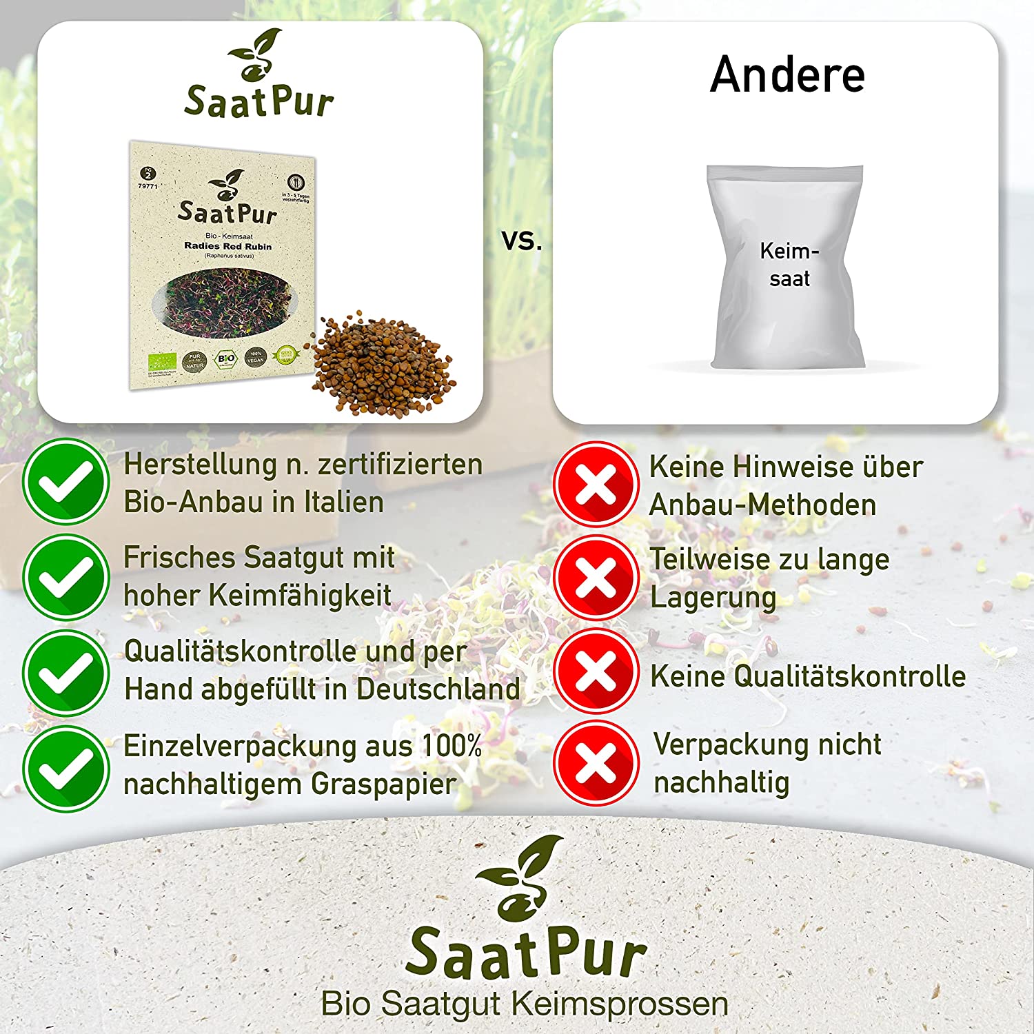 aus kontrolliertem Anbau für die Sprossenanzucht.
