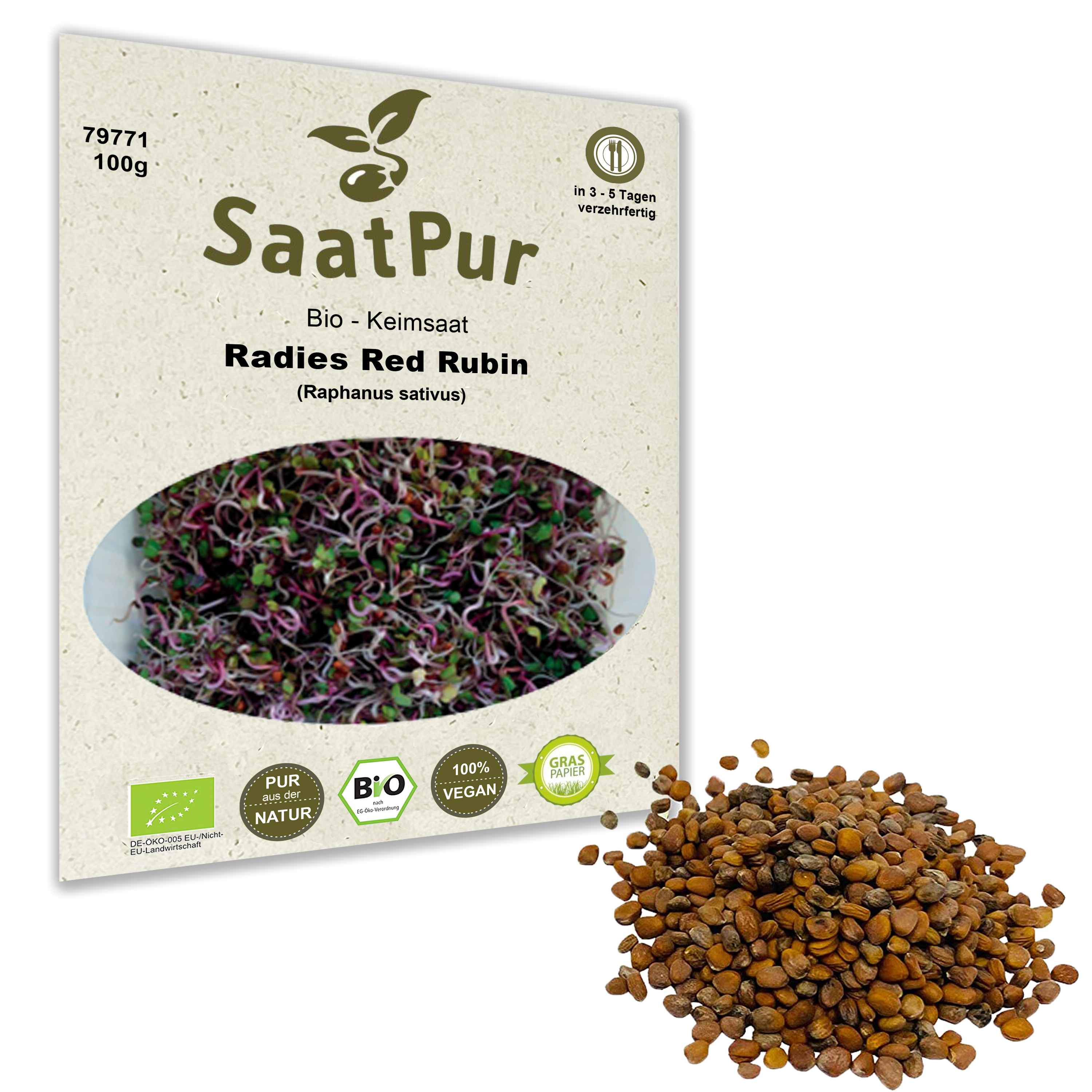 100 g Saatgut BIO-KEIMSPROSSEN Radies Red Rubin