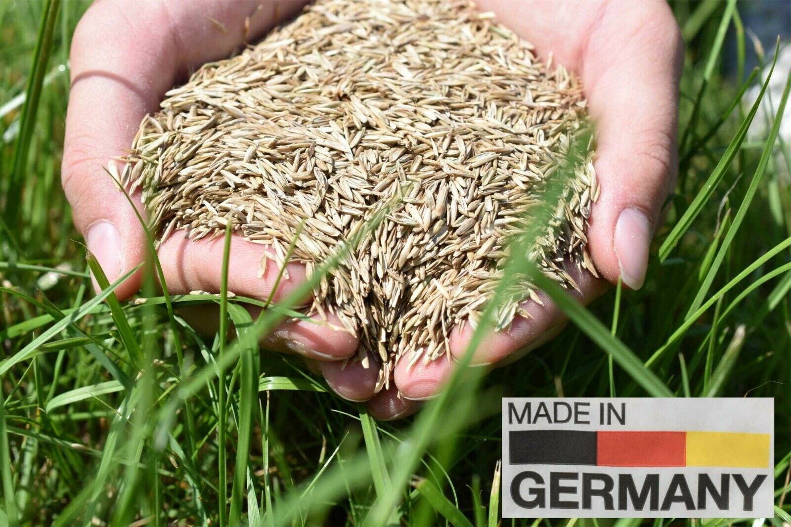 - zertifiziertes Qualitätssaatgut mit hoher Keimkraft für einen dichten , grünen, saftigen Rasen