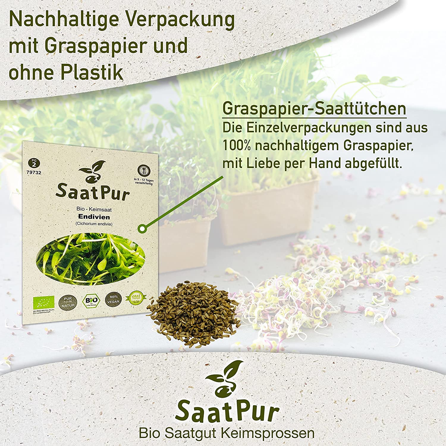 Produktinformationen "Bio Keimsprossen Endivien Bio Keimsaat Sprossen Mikrogrün Microgreen"