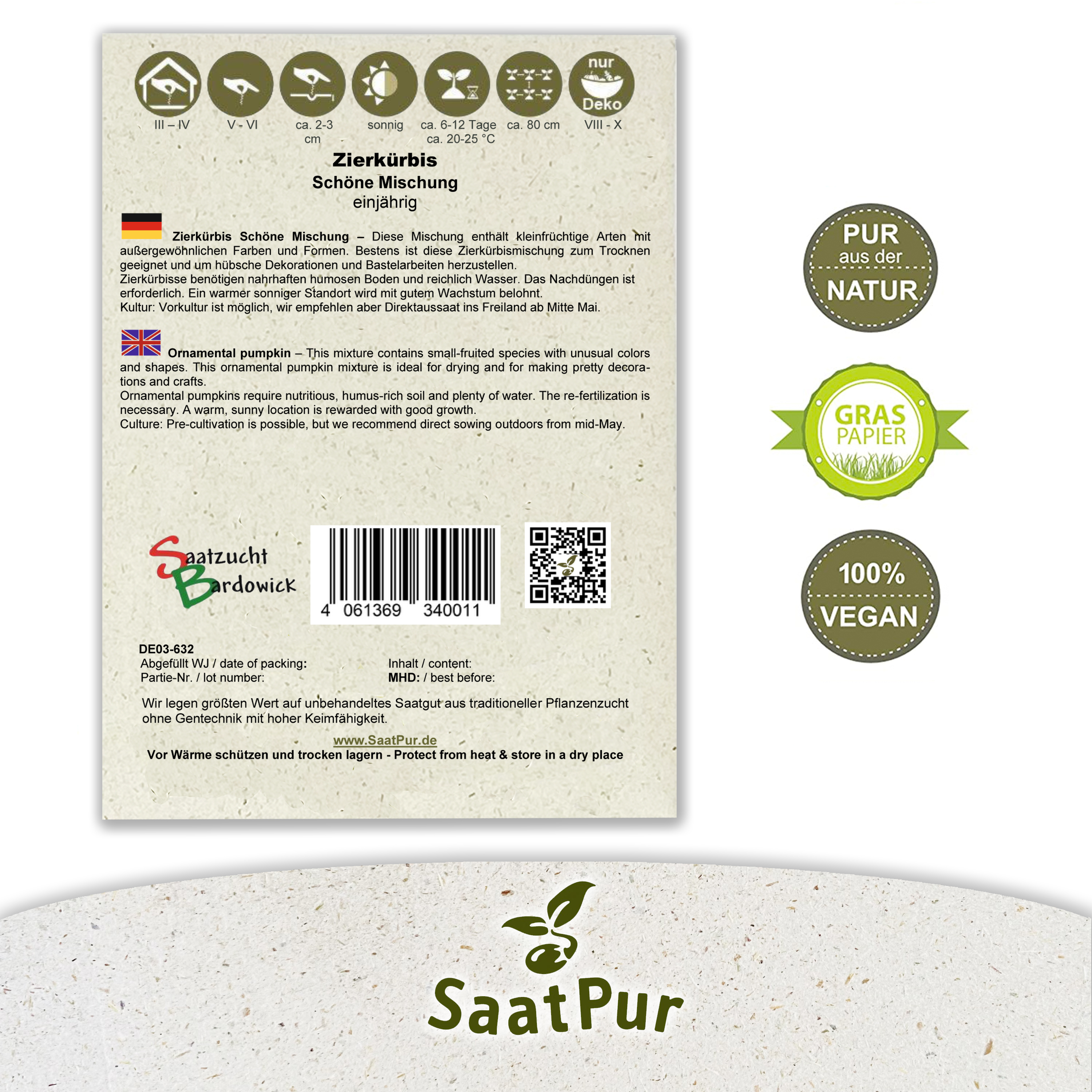 Kultur: Vorkultur ist möglich, wir empfehlen aber Direktaussaat ins Freiland ab Mitte Mai.