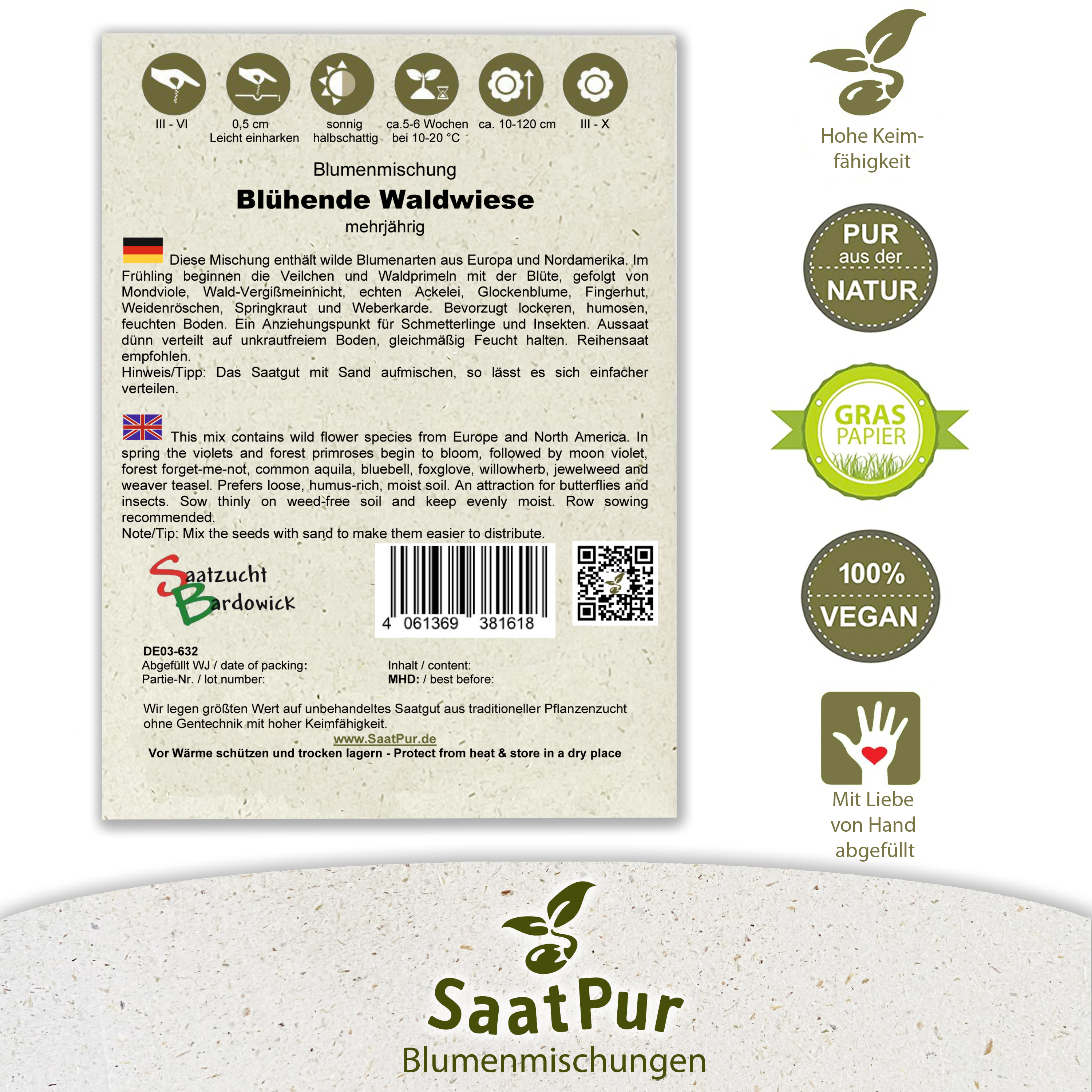 Die Blühende Waldwiese enthält wilde, mehrjährige und teilweise duftende Blumenarten aus Europa