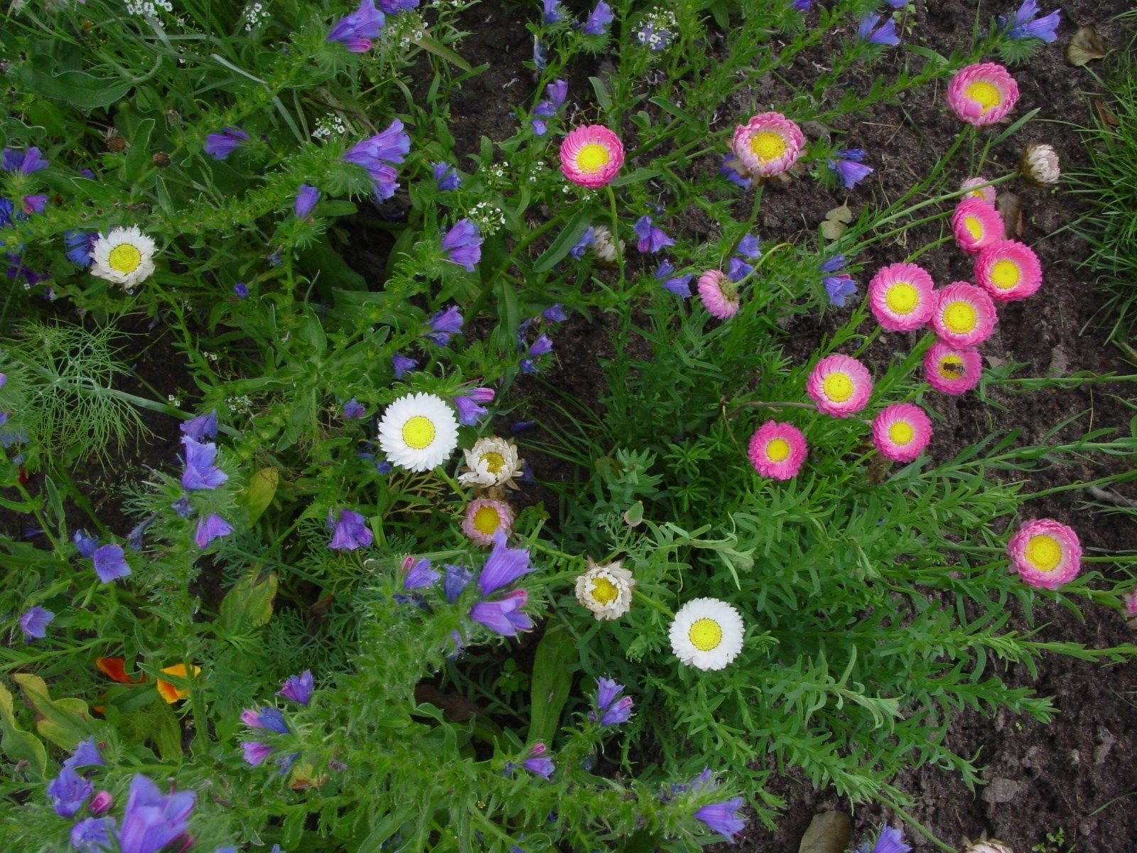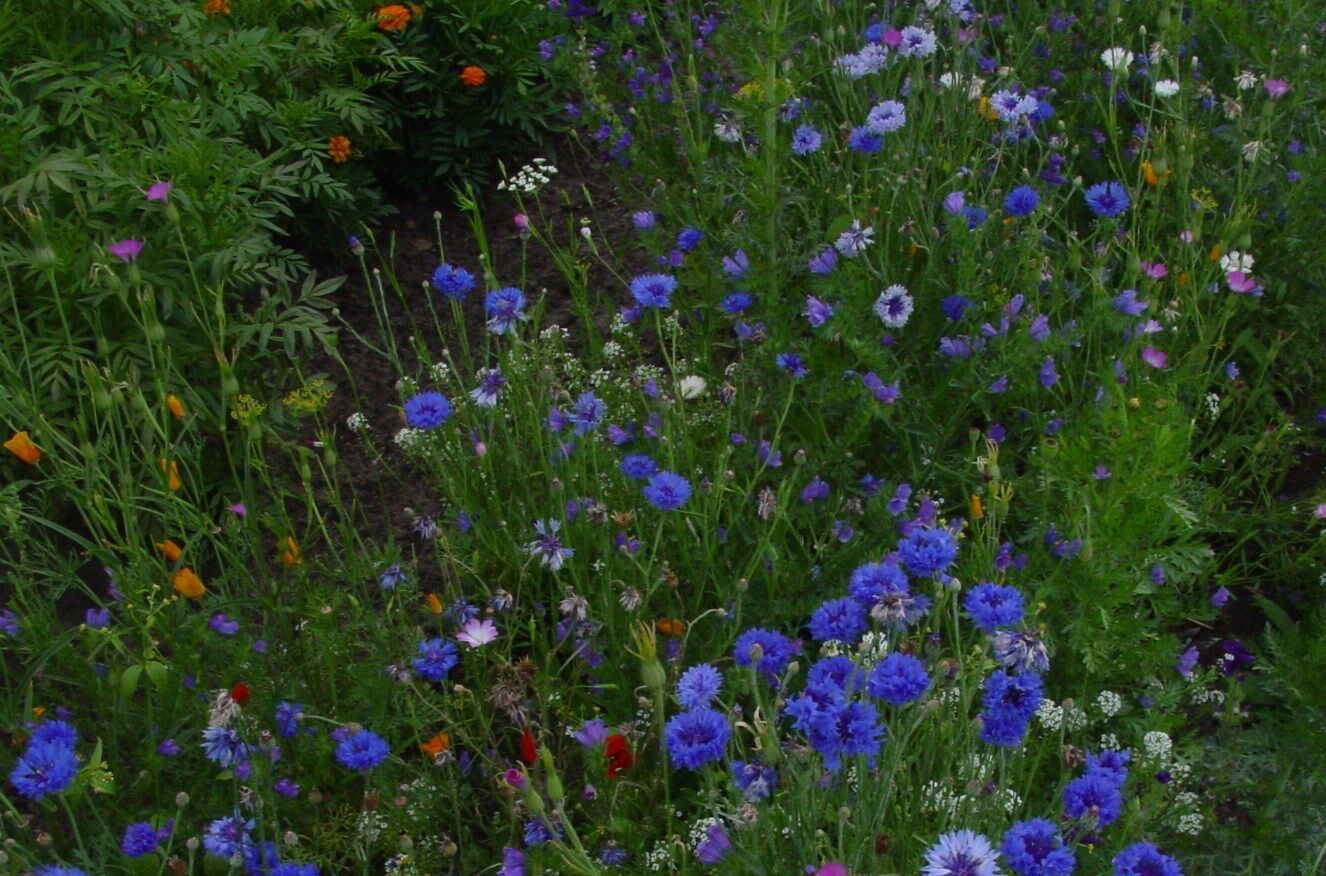 Adonisröschen, Kornrade, Duftsteinrich, Fuchsschwanz, Sommervergissmeinnicht, Wiesenkerbel, Borretsch, einfache Aster, Kornblume, Kamille, Kronenwucherblume, Saatwucherblume, Winde, Schöngesicht, Schmuckkörbchen, Kosmee, Hundszunge, Zwerg-Dahlie, Feldrittersporn, Natternkopf, Schöterich, Kalifornischer Mohn, Schnee auf dem Berge, Kokardenblume, kleinblumige Sonnenblume, Wilde Malve, Liebeshainblume, Klatschmohn, einjähriger Sommerphlox, Resede, Sonnenhut, Scharfer Mauerpfeffer, Fette Henne, Tripmadam, Witwenblume, Strandflieder, Studentenblume, Kapuzinerkresse u.a.