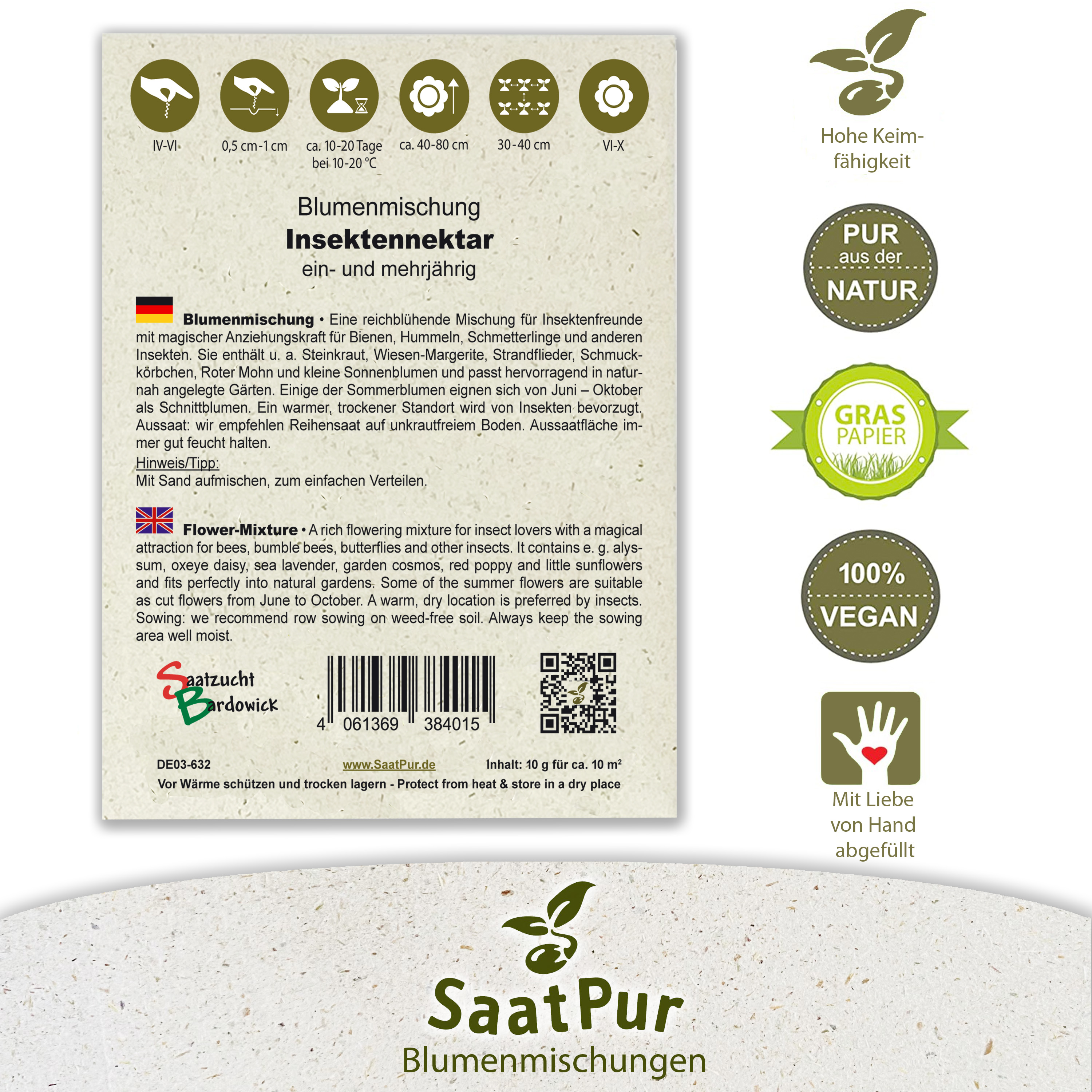 Inhalt: 1 Portion Saatgut reicht für ca. 10 m²