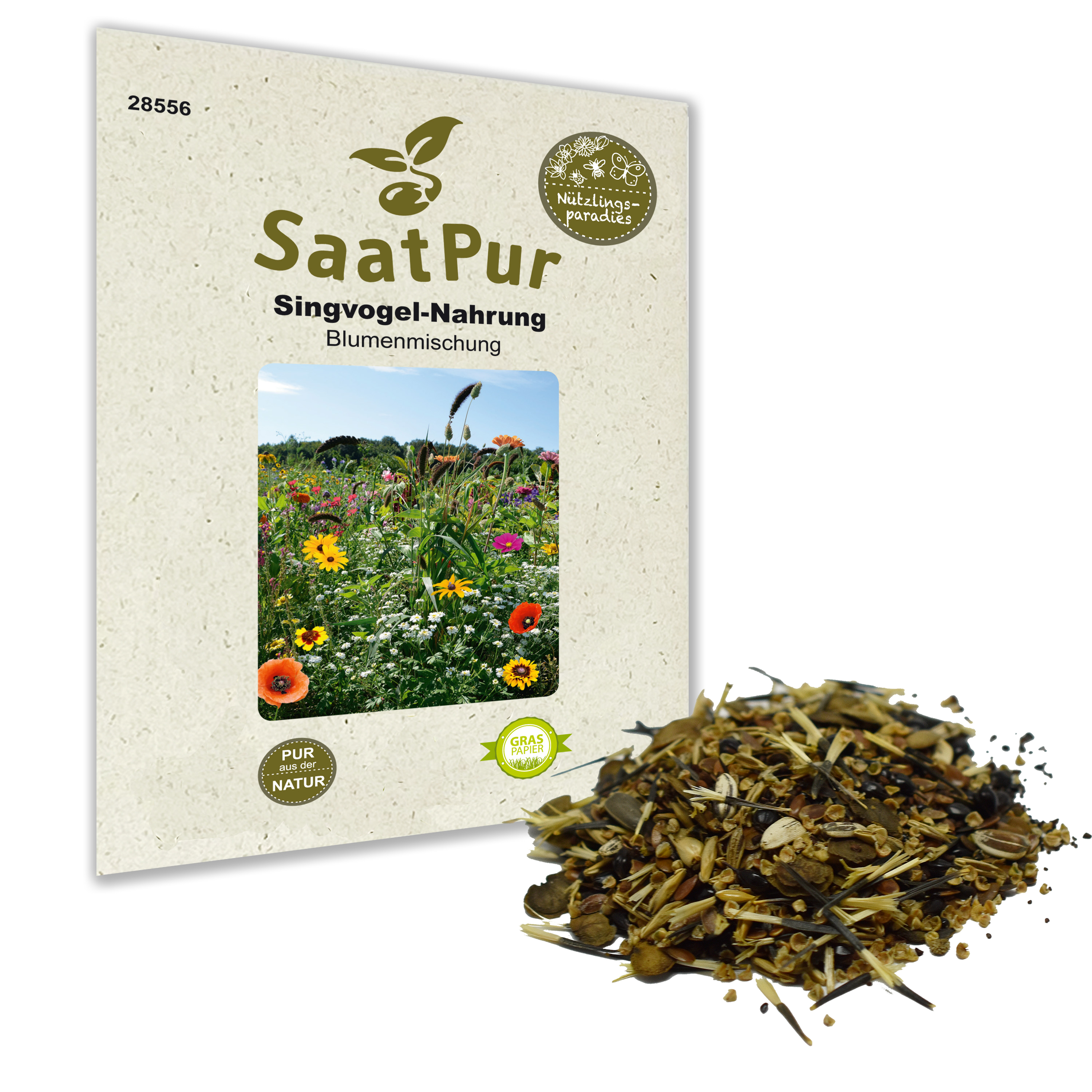 Diese wunderschöne, einjährige Blumenmischung enthält eine Vielzahl verschiedener Pflanzen, die im Herbst ein reiches Angebot schmackhafter Samen entwickelt und somit den bei uns überwinternden Singvögeln während der kalten Jahreszeit reichlich Futter in ihrer natürlichen Umgebung bietet. Während des Sommers ist diese Mischung ein schöner Blickfang für Beete und naturnah gestaltete Flächen. Blüte: ab Juni bis zum Frost nacheinander abblühend. Aussaat breitwürfig oder in Reihen (Abstand 40 cm).Während der Keimphase immer gut feucht halten.