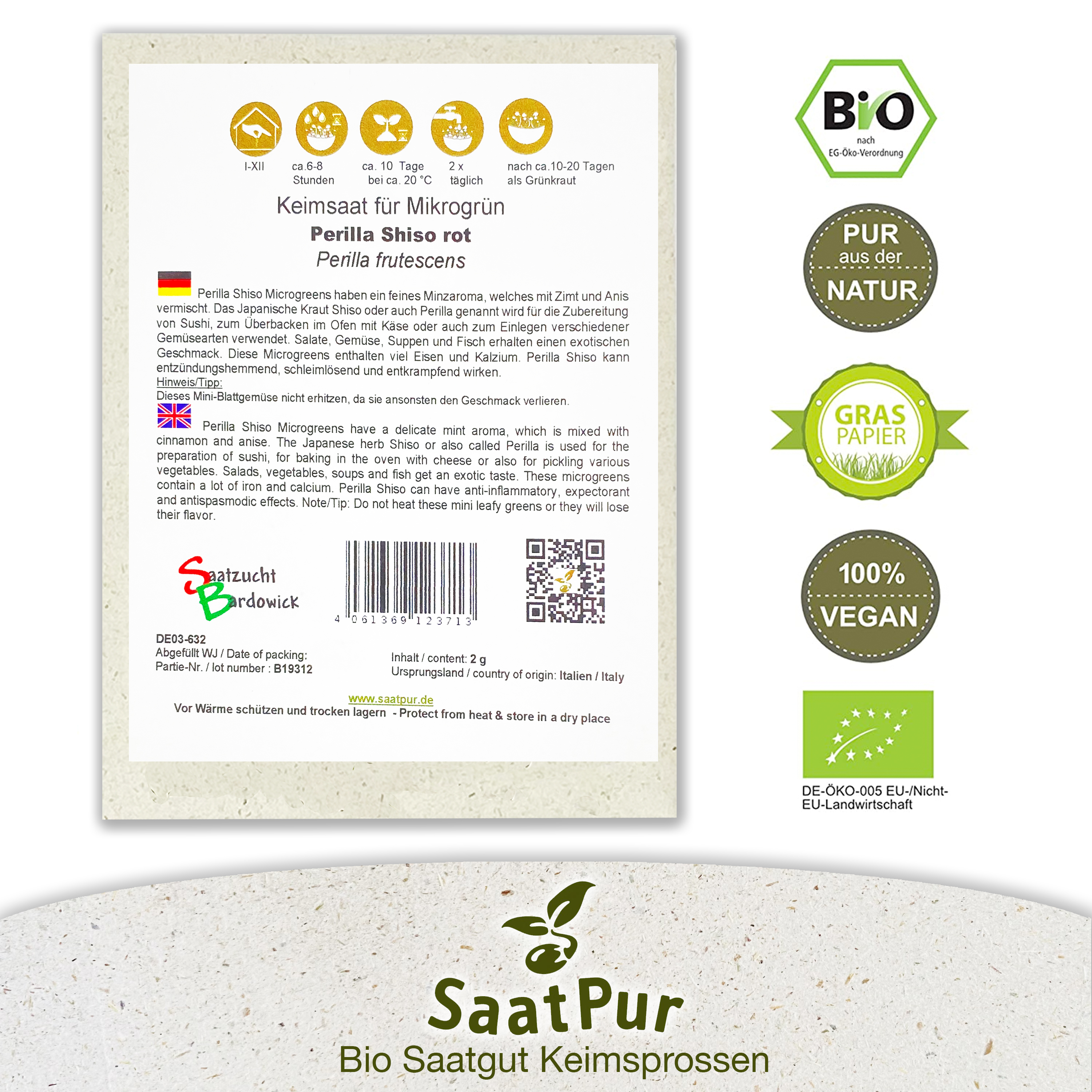 Produktinformationen "BIO Keimsprossen Perilla Shiso rot Keimsaat Microgreens"