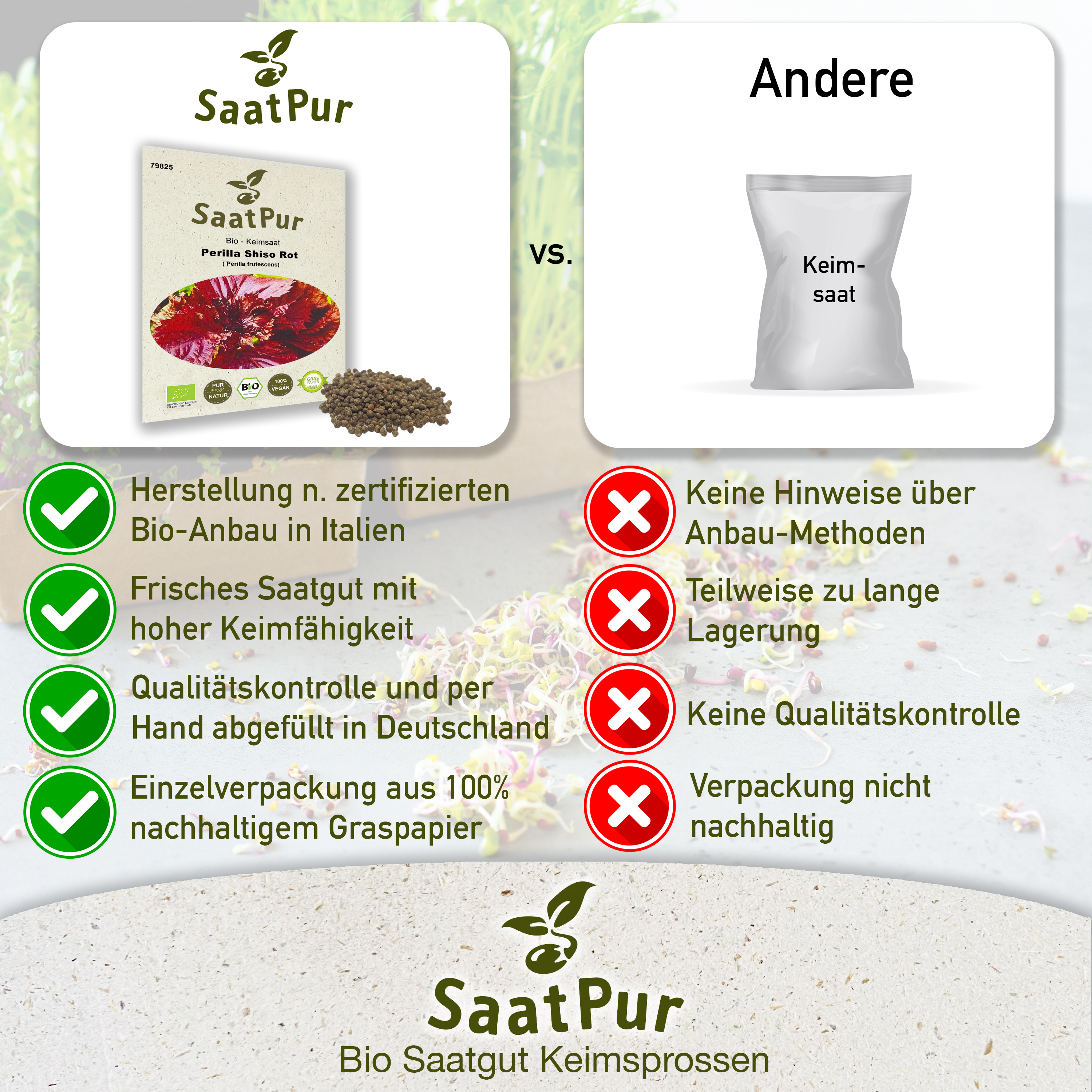 BIO Keimsprossen Perilla Shiso rot Keimsaat Microgreens