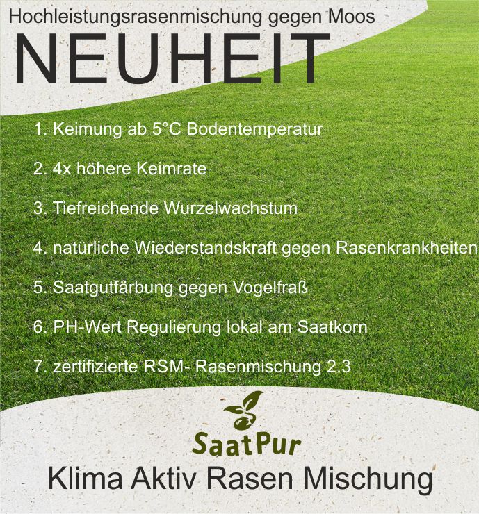 SaatPur KlimaAktivRasen RSM 2.3 – Hochleistungs-Rasennachsaat für dichte, vitale Grünflächen