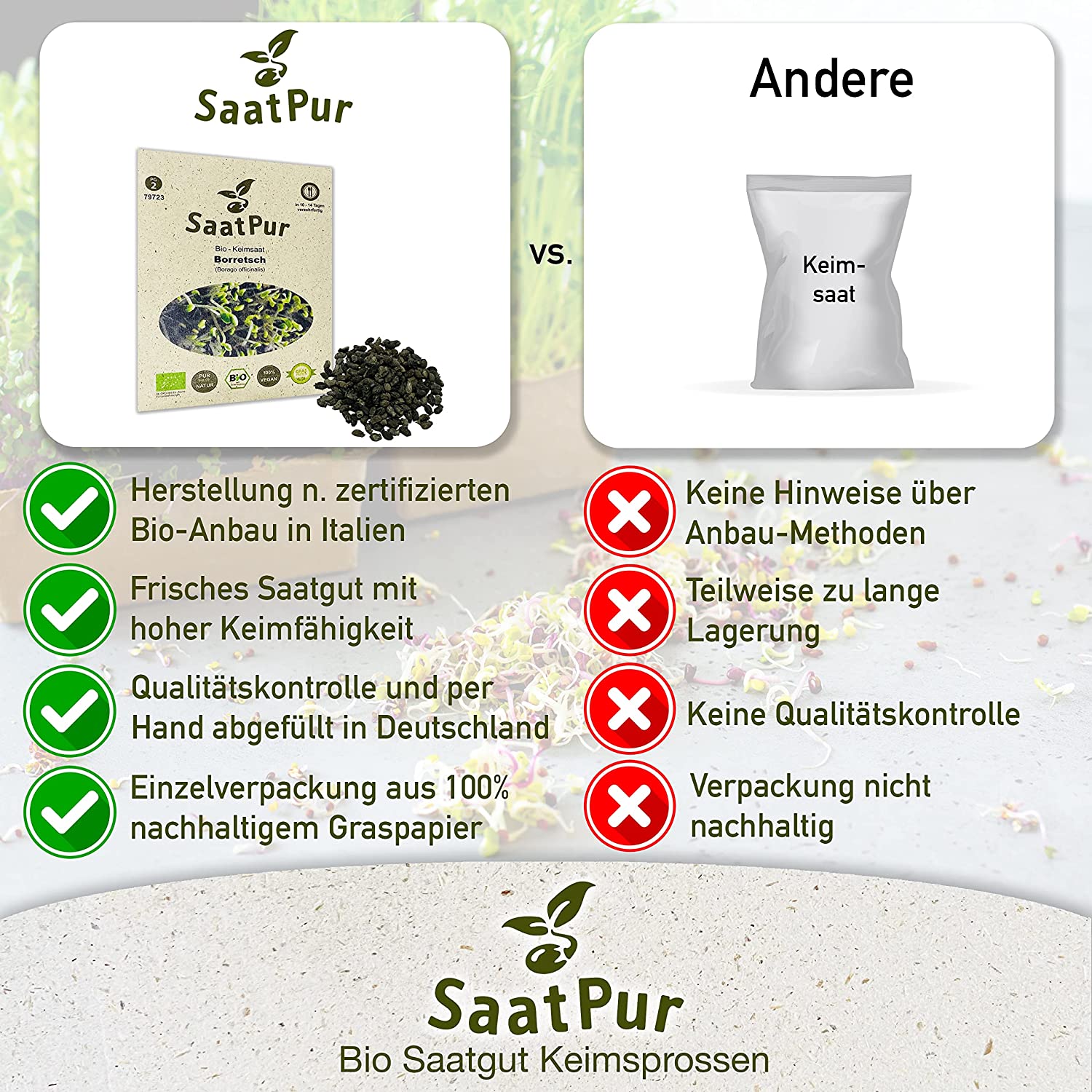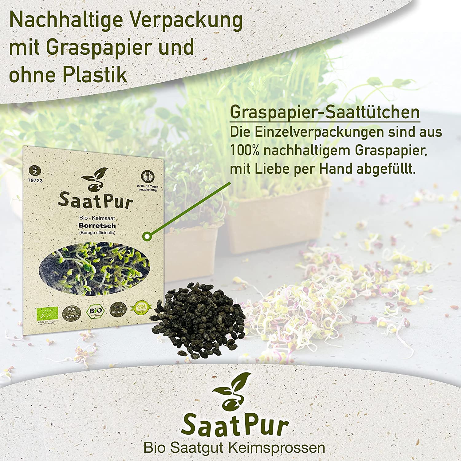 Produktinformationen "BIO Keimsaat für Sprossen Borretsch Samen Keimsprossen Microgreens Vegan Öko"