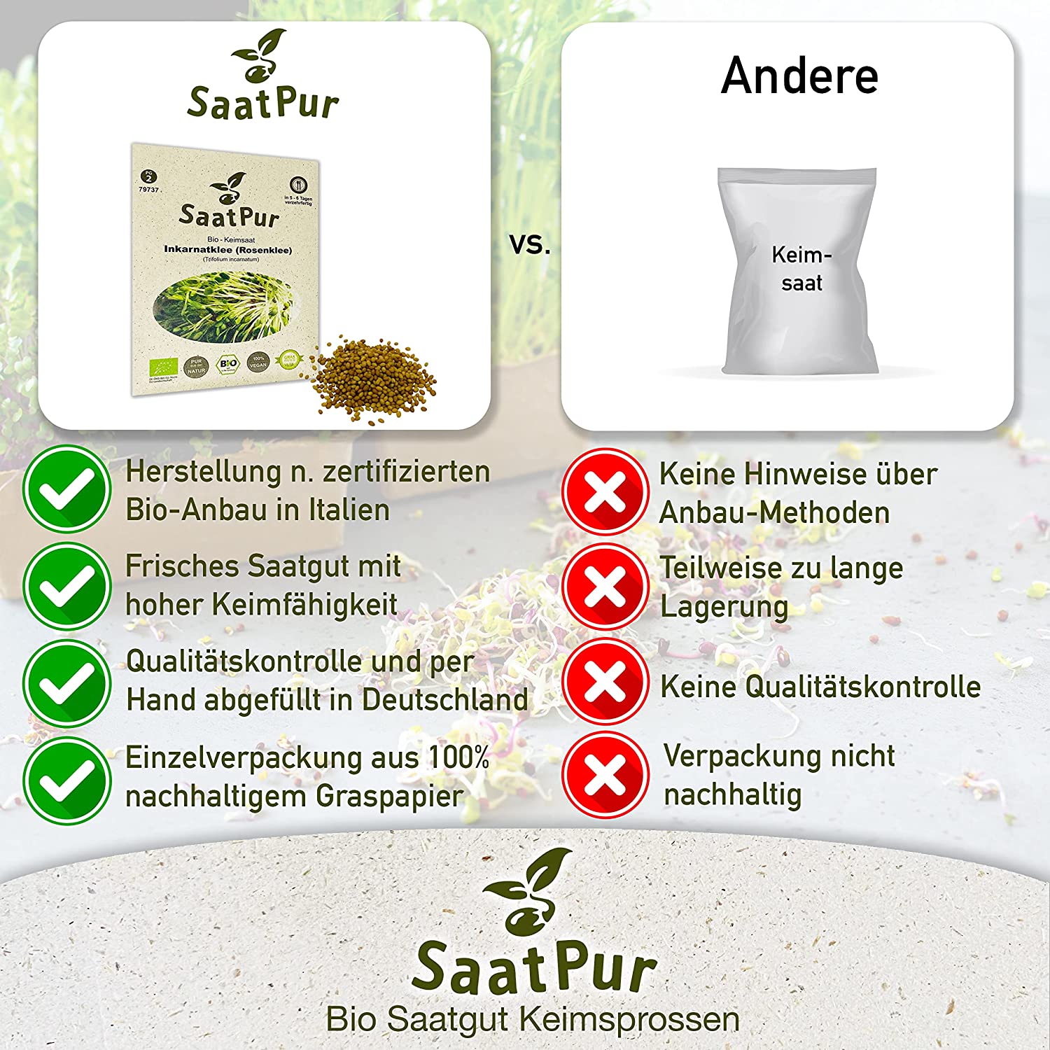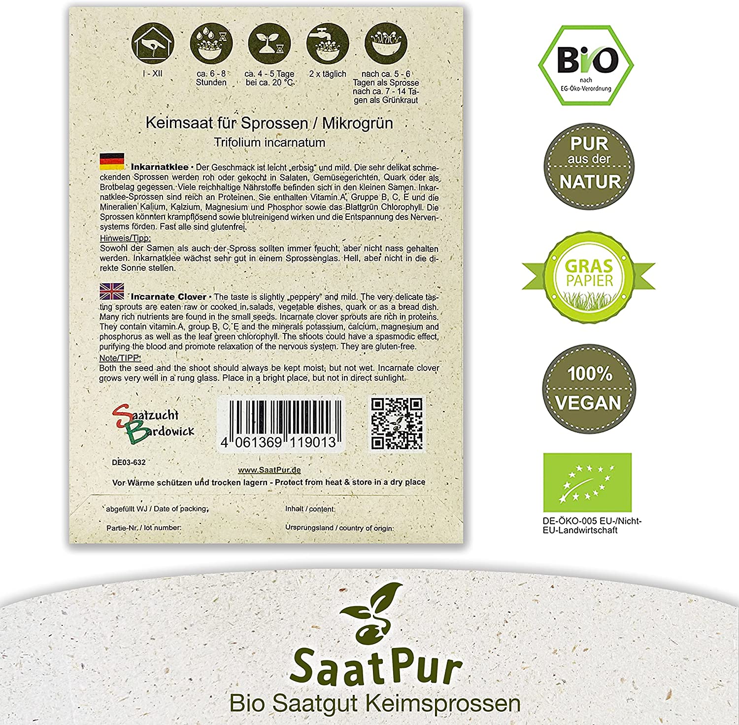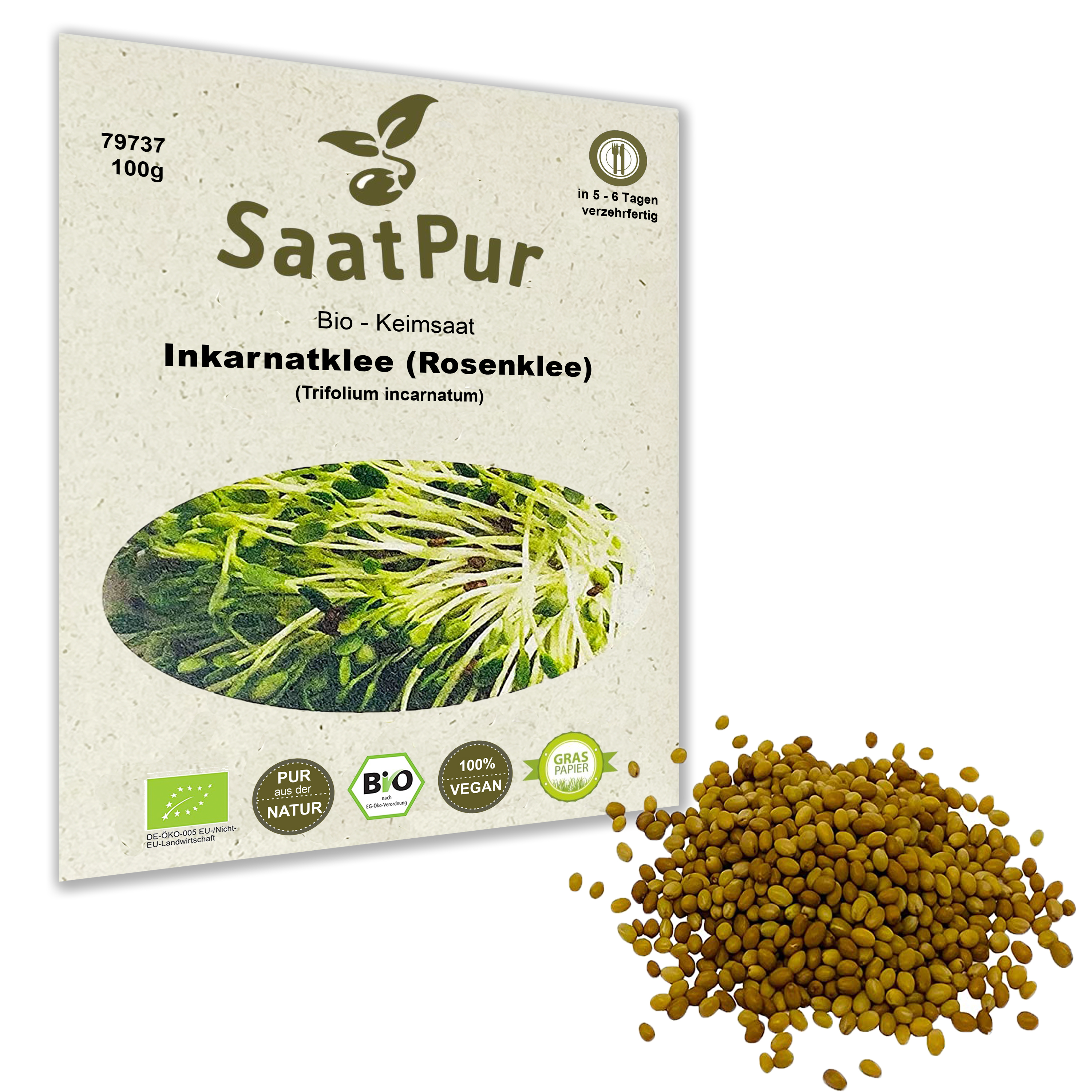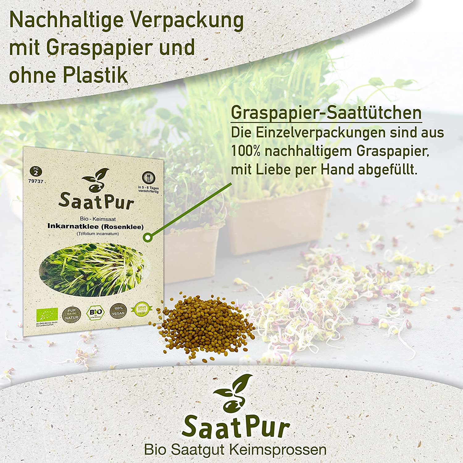 Produktinformationen "BIO Keimsprossen Inkarnatklee Rosenklee Keimsaat Mikrogrün Microgreen"