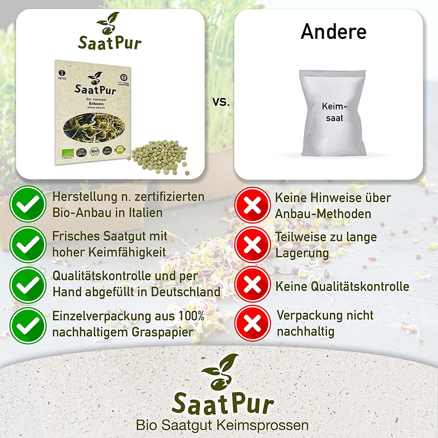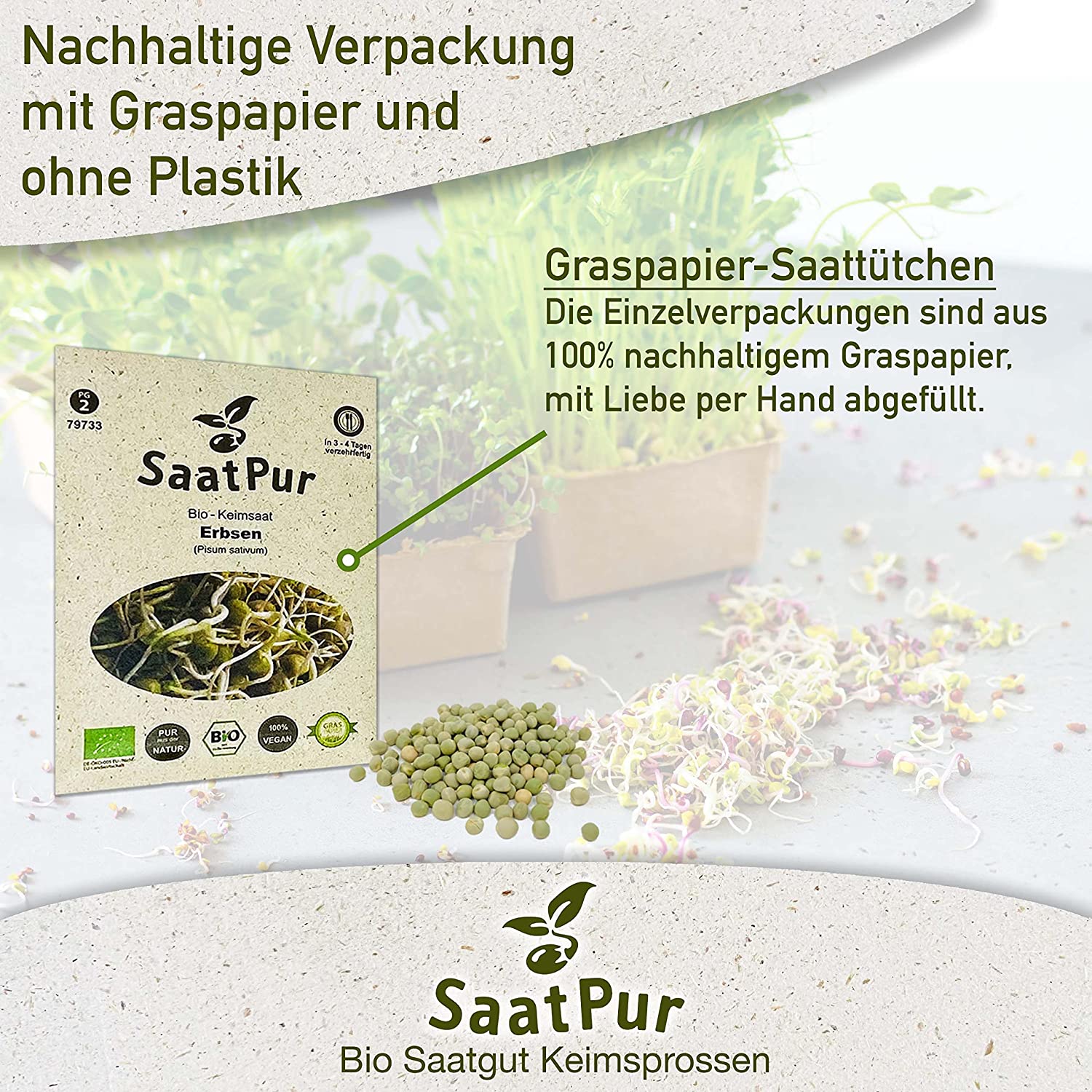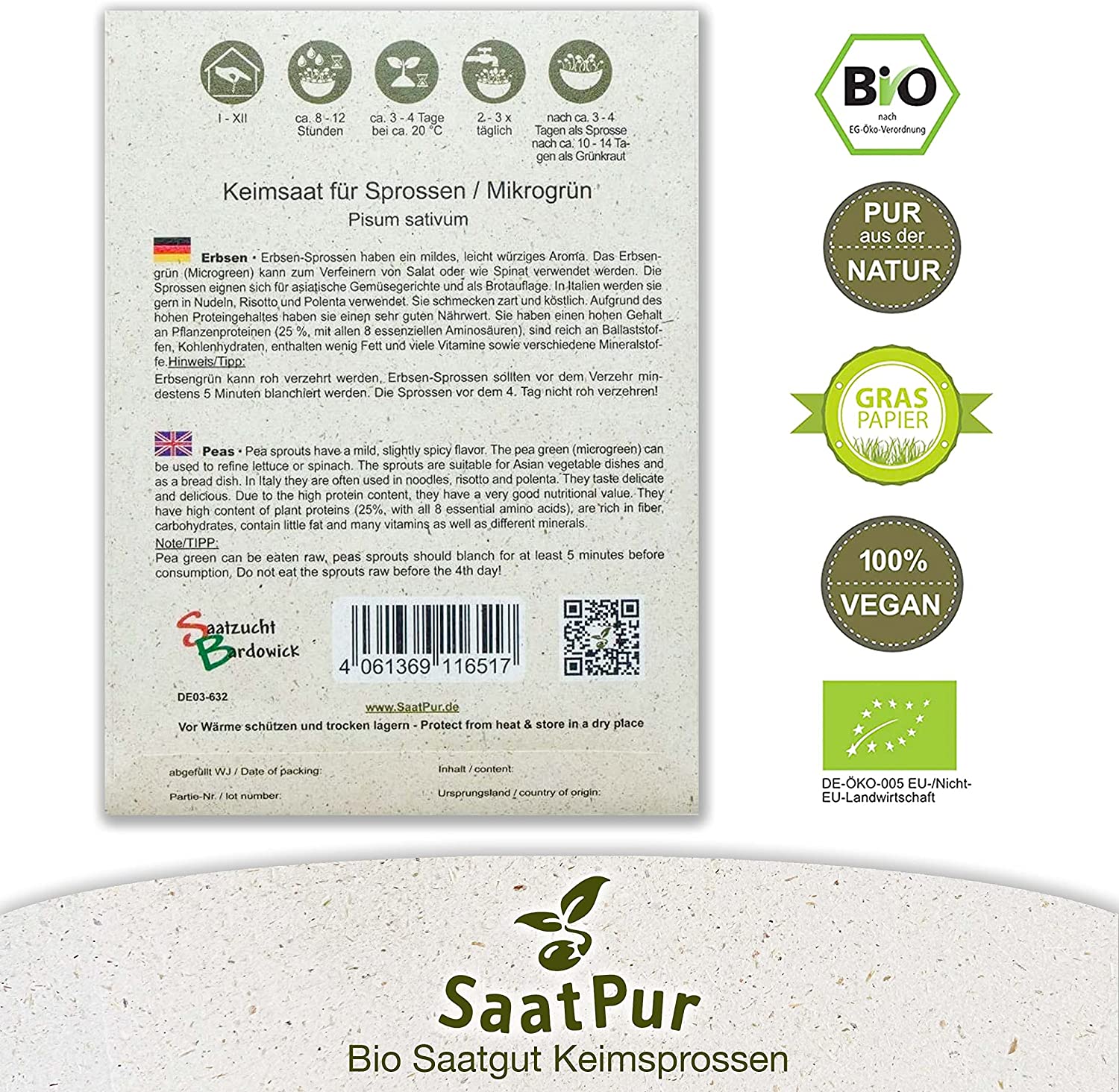Produktinformationen "Bio Keimsaat für Sprossen Erbsen Keimsprossen Microgreens Vegan"