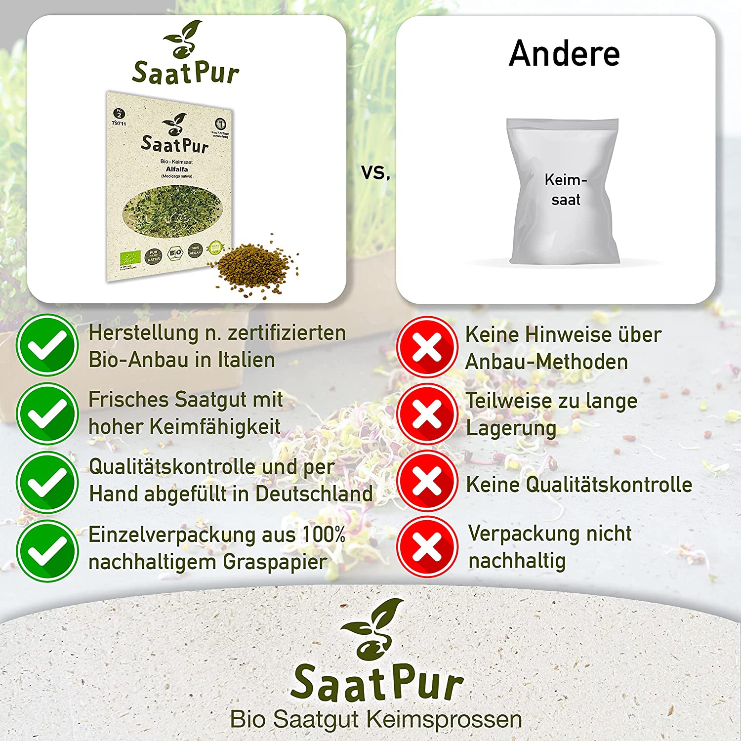 Inhalt:Alfalafa, Erbsen, Kichererbsen, Linsen, Mungo, Weizen (einzeln verpackt)