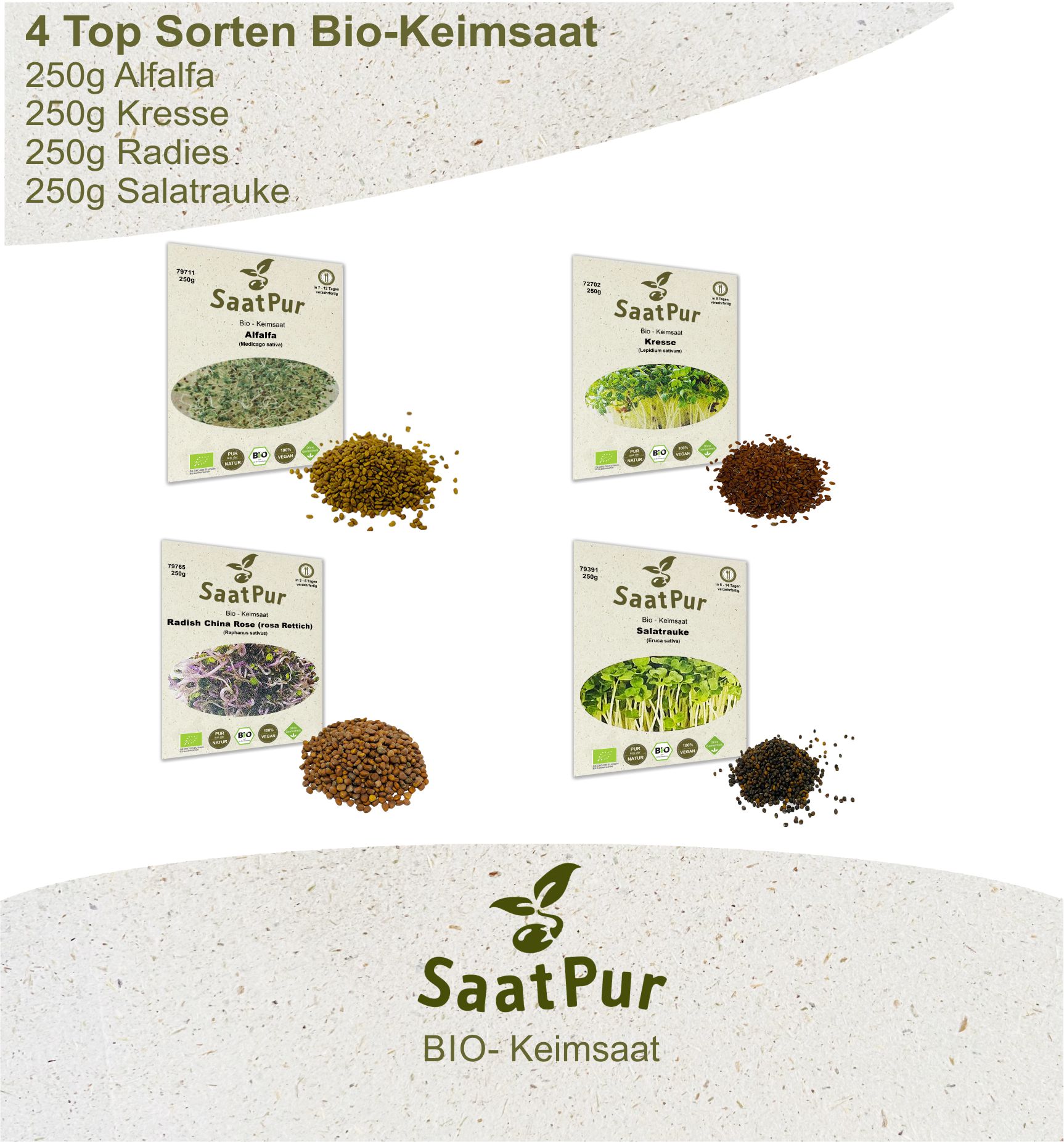 1Kg BIO Keimsprossen 4 Sorten Mix Mischung Keimsaat Alfalfa Kresse Radis Salatrauke