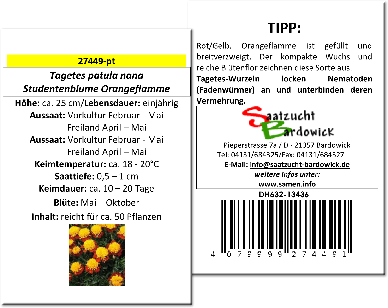 | Botanische Bezeichnung: | Tagetes patula nana |