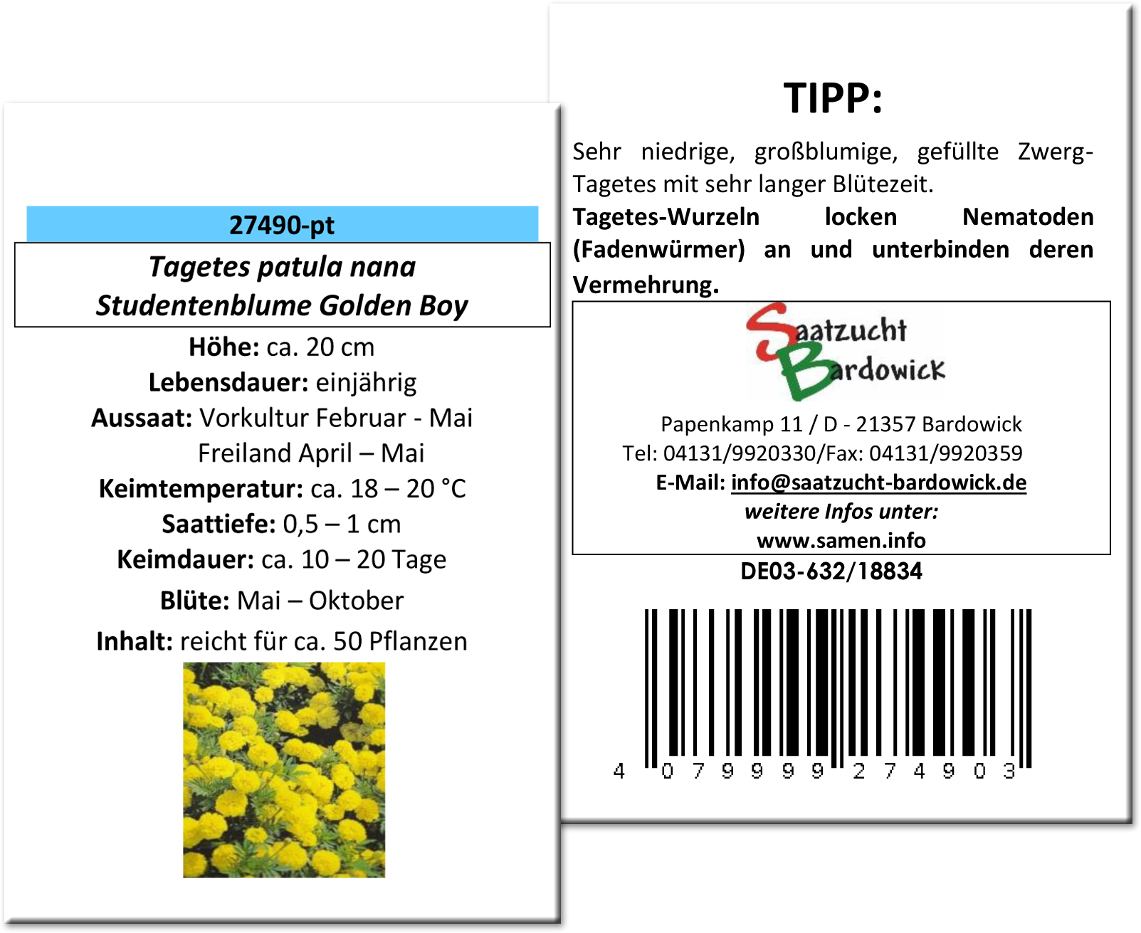 | Botanische Bezeichnung: | Tagetes patula nana |