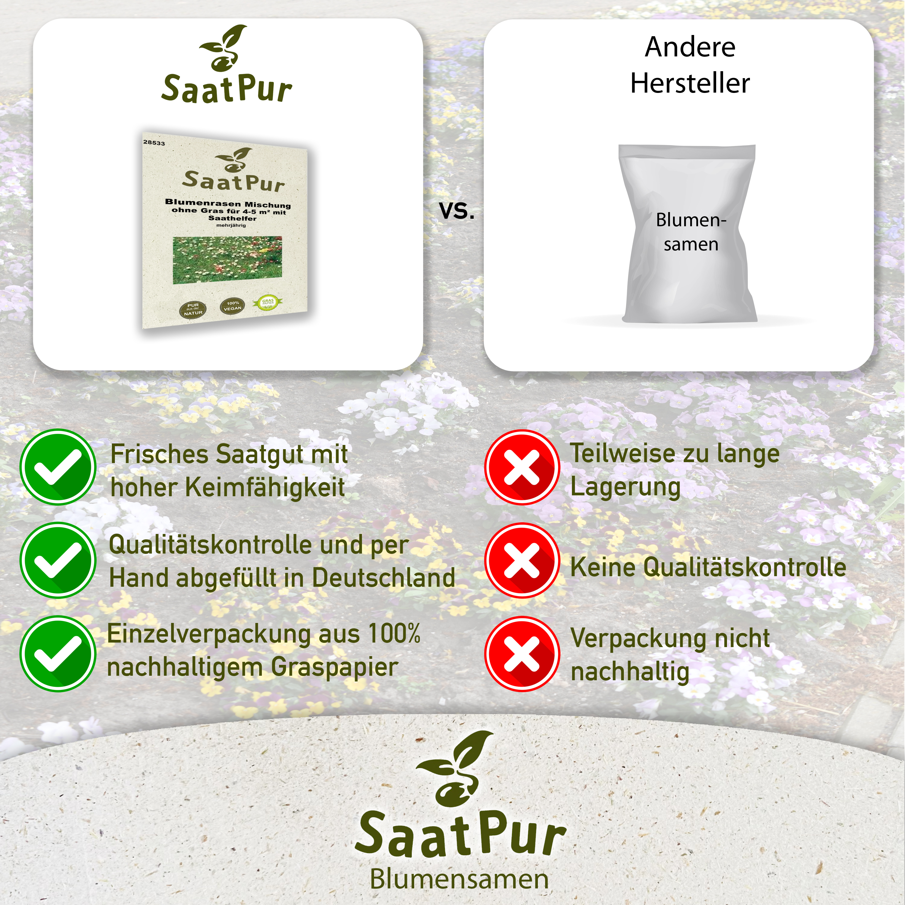 Blumenrasen (Mischung ohne Gras, mit Saathelfer)