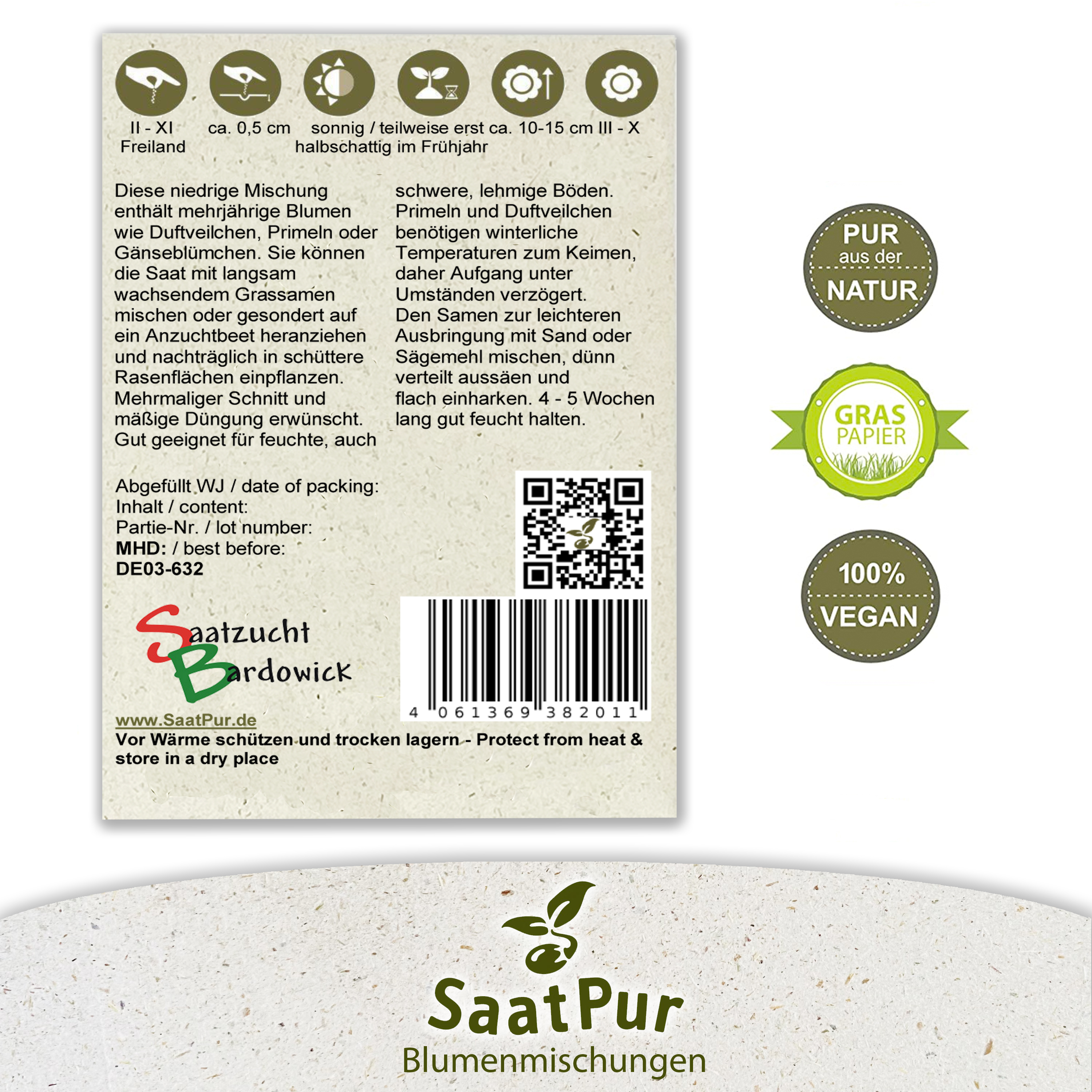 Inhalt: 1 Portion Saatgut reicht für ca. ca. 4 – 5 m²