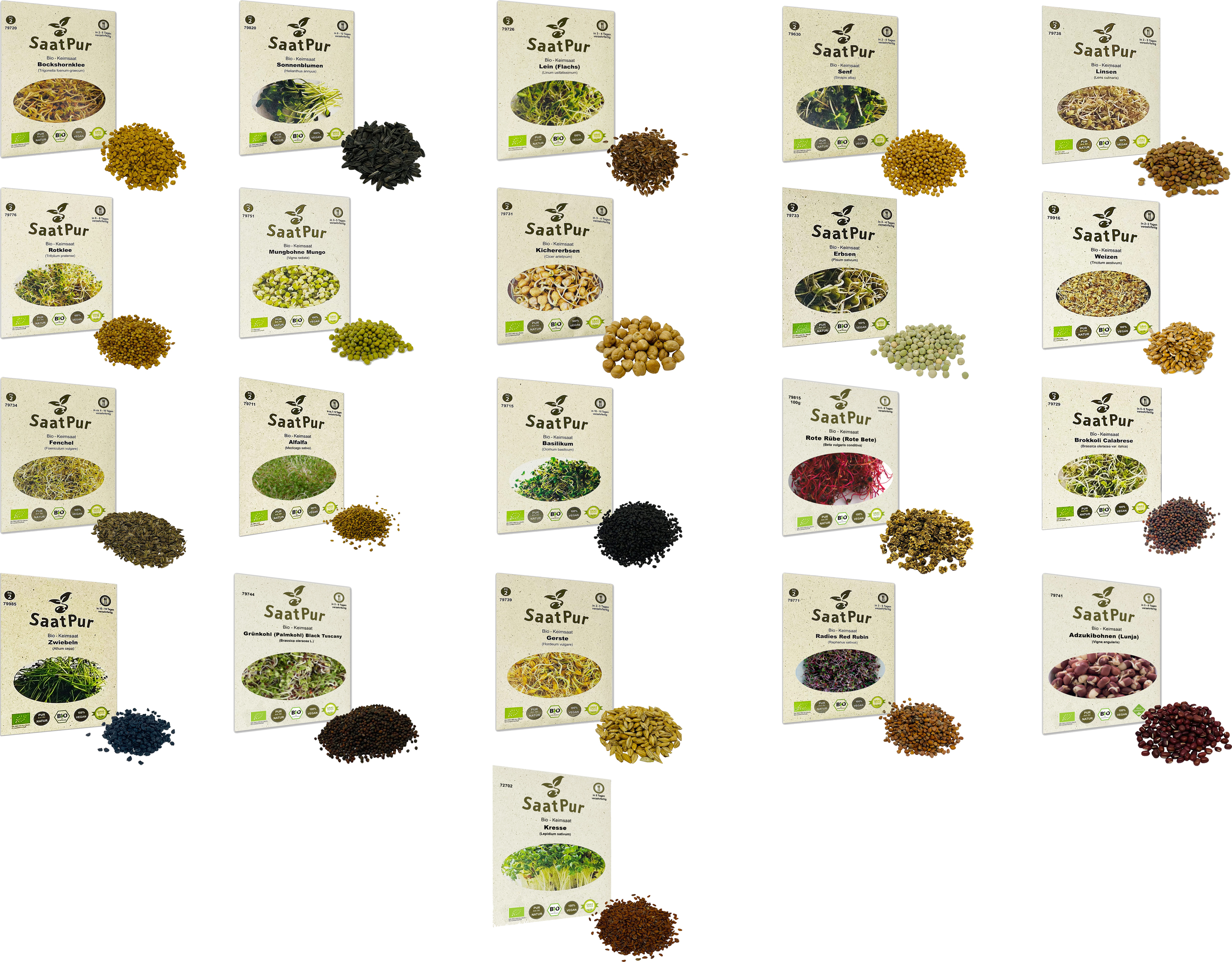 21 Portionen SaatPur Bio-Keimsprossen passend zum Buch von Angelika Fürstler - Sprossen und Mikrogrün -