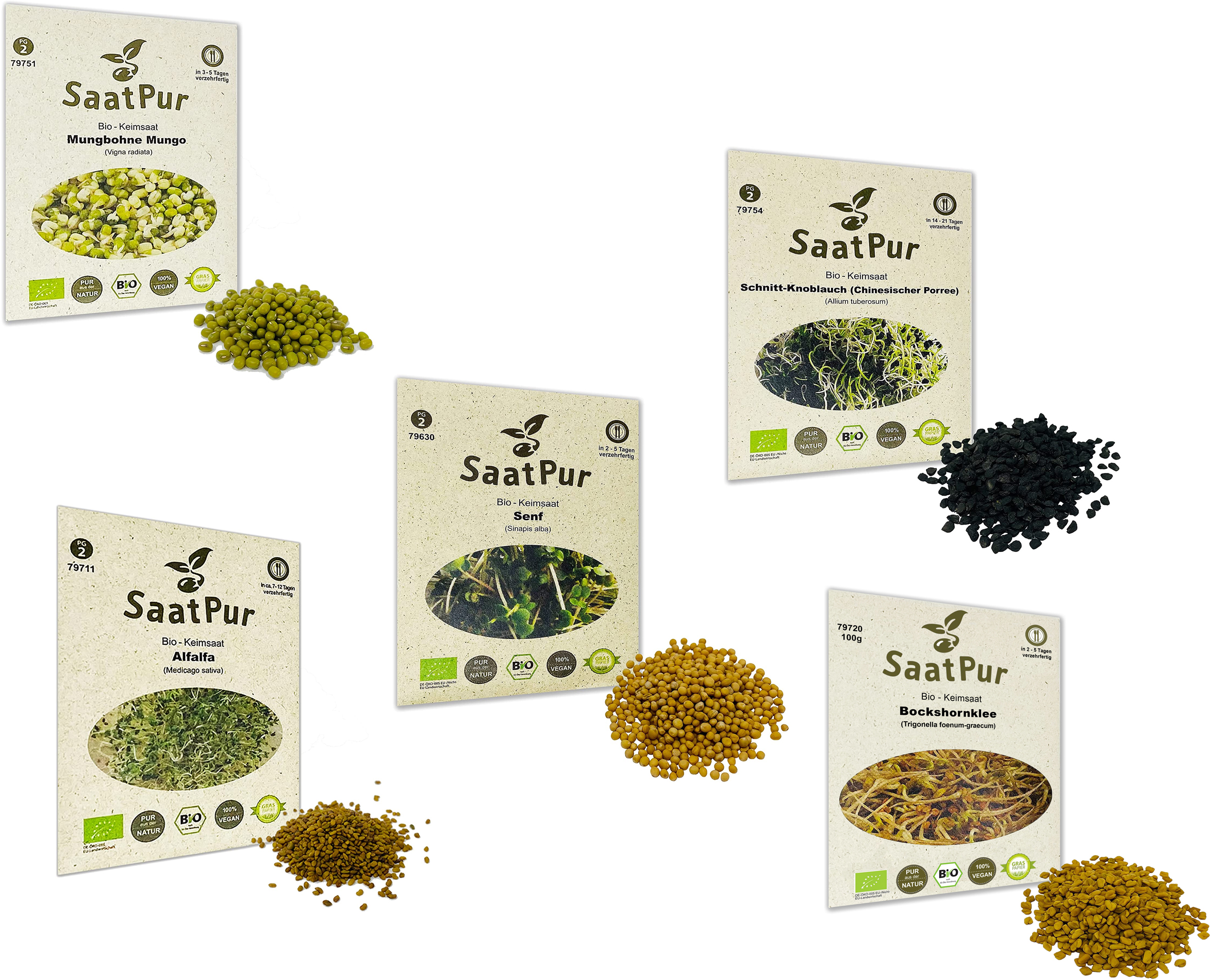 Sie erhalten 5 x 100 g Saatgut BIO-KEIMSPROSSEN sortiert