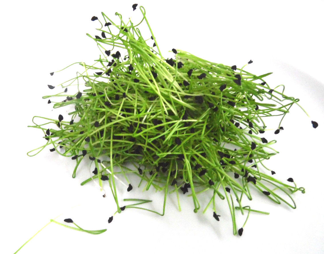 Den Samen gründlich mit Wasser abspülen. Stellen Sie die Keimschale an einen hellen Platz, aber nicht in die direkte Sonne. Sowohl der Samen als auch der Spross sollen immer feucht, aber nicht nass gehalten werden. Die Ernte ist nach 14 Tagen möglich.