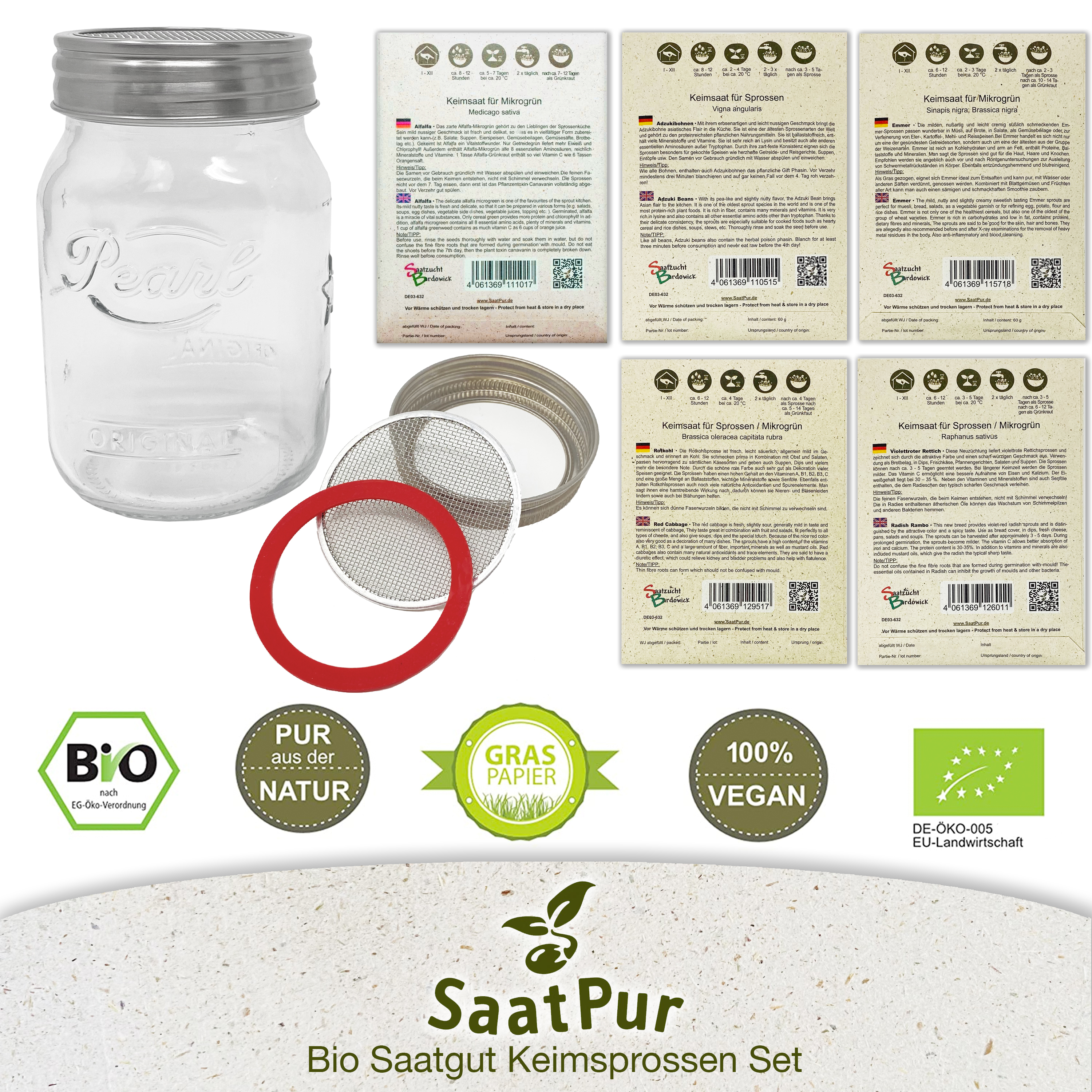 mit Keimsprossenglas (500ml) und 5 Saattüten Keimsaat,