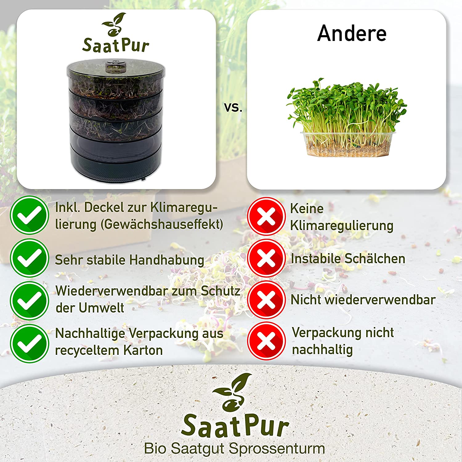 SaatPur Sprossenbox Set 1 - Keimgarten Keimbox Keimsaat Keimgerät Sprossen ziehen