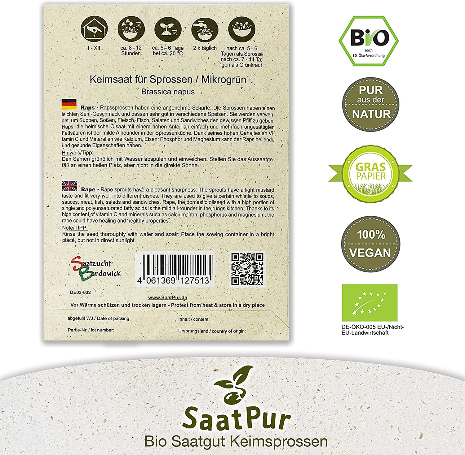 Produktinformationen "BIO Keimsprossen Raps Keimsaat Mikrogrün 50g"