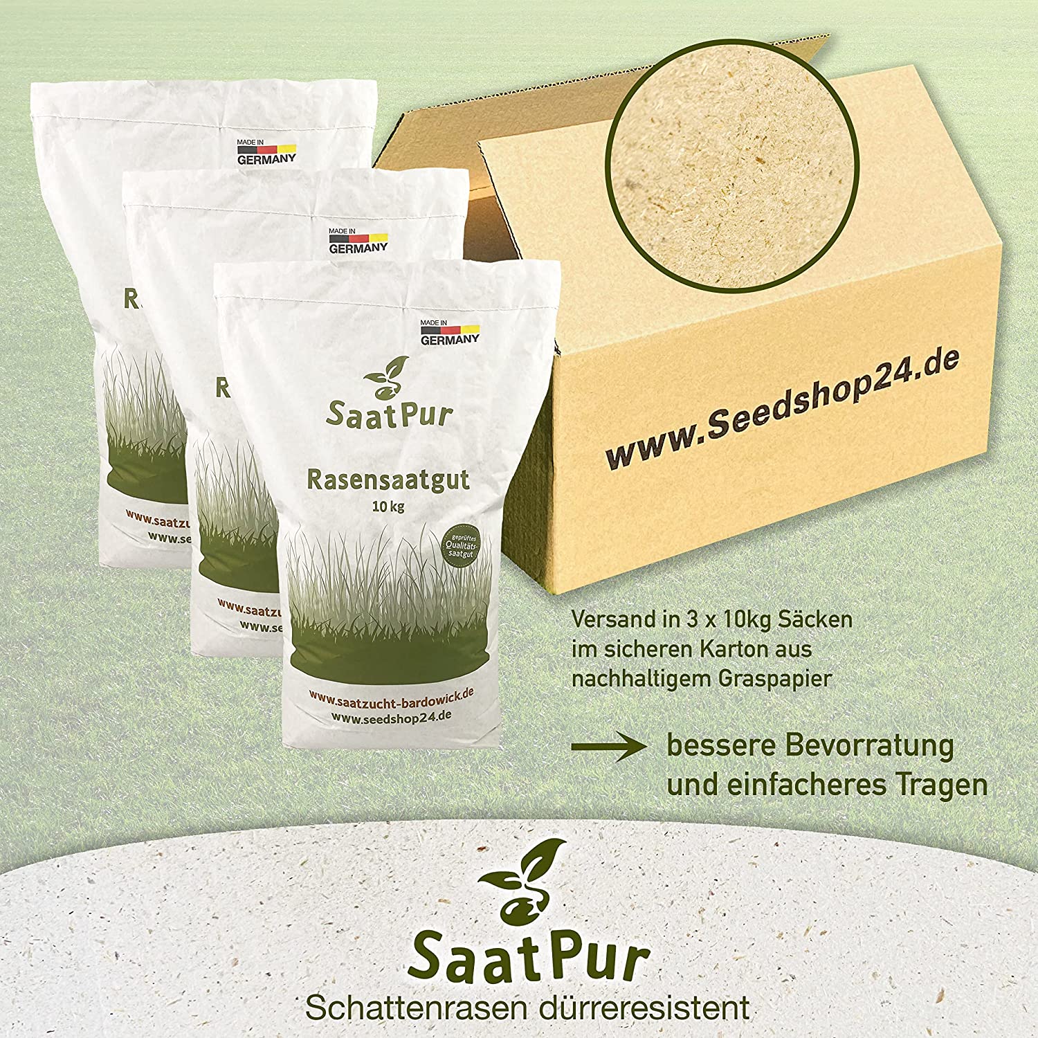 Produktinformationen "SaatPur® Rasensamen dürre Schattenrasen 30kg"